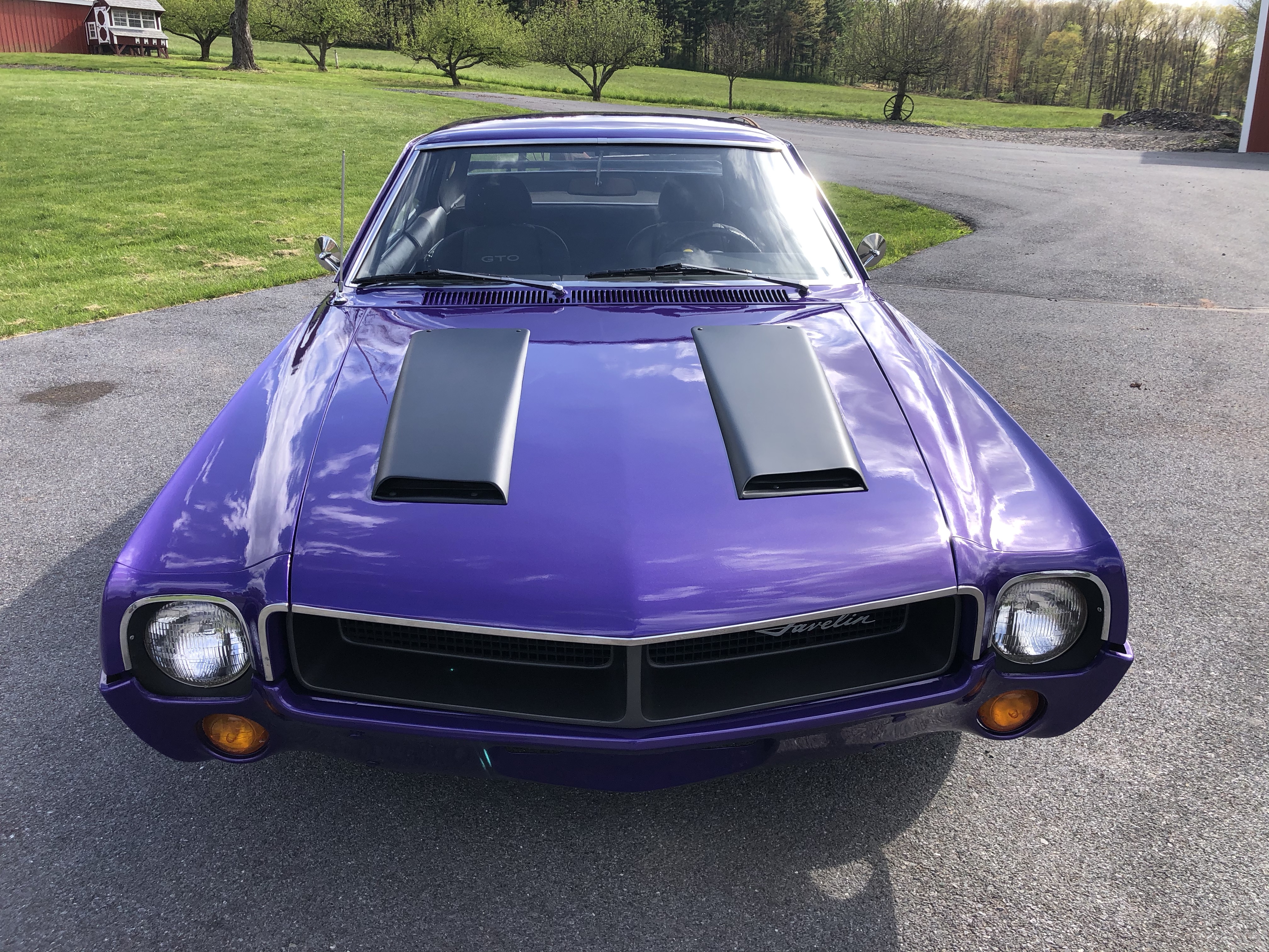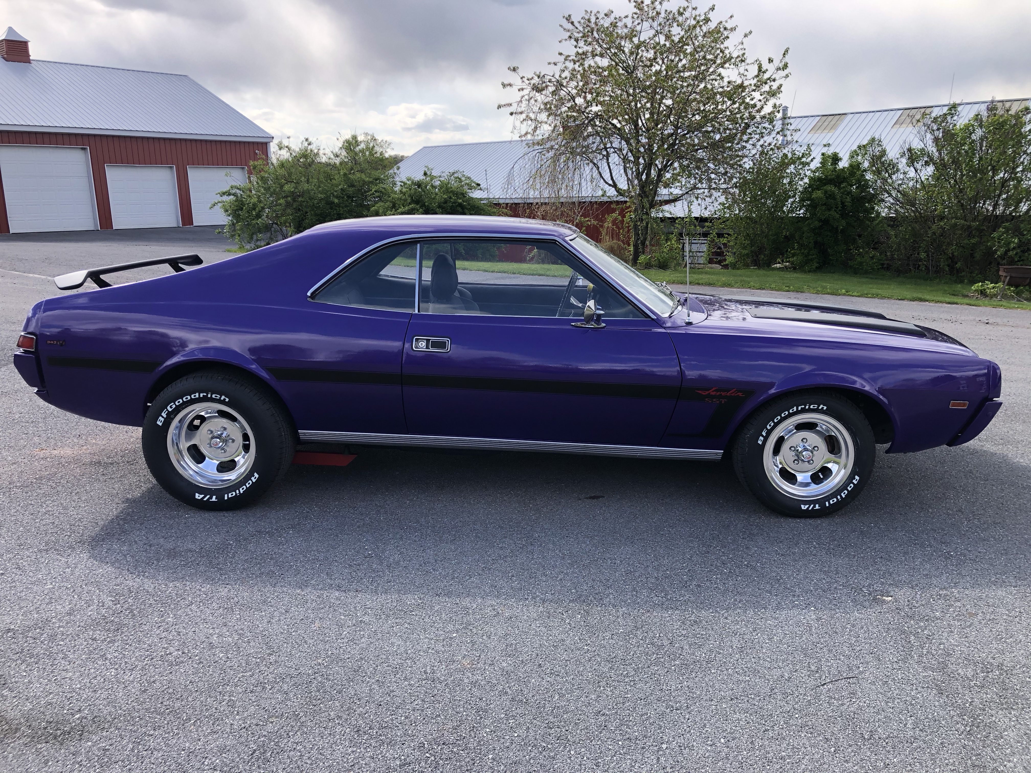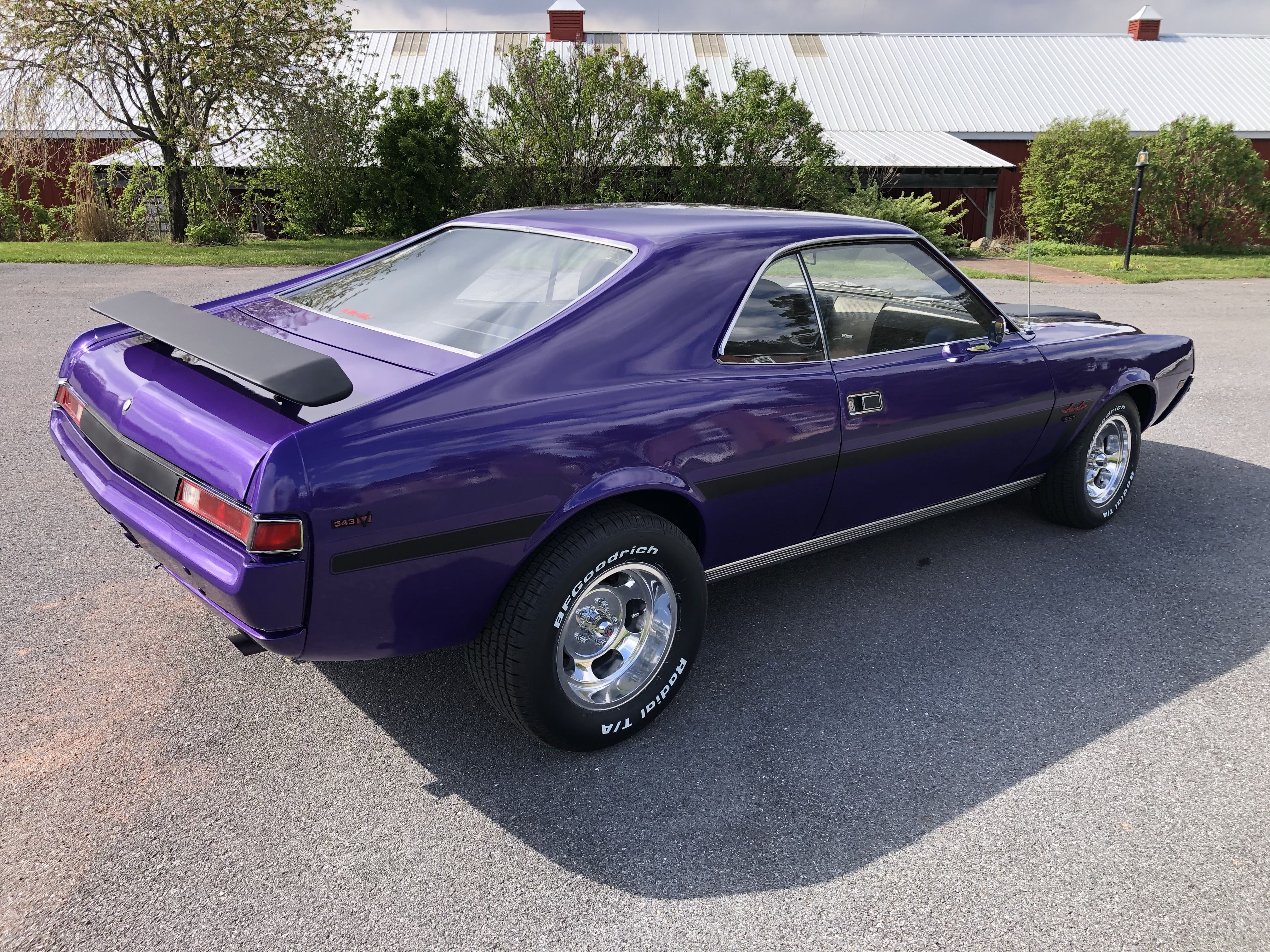 Here’s a beautiful 1969 Javelin. Fresh Plum Crazy Pearl Coat paint and satin black accents. Built 343 with aggressive cam and exhaust, 4 speed, posi, new US Mag wheels and tires.